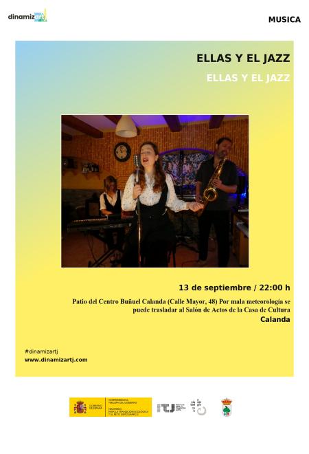 Actuación de ELLAS Y EL JAZZ en Calanda, que tendrá lugar en el Patio del Centro Buñuel el sábado 13 de septiembre a las 22:00.
