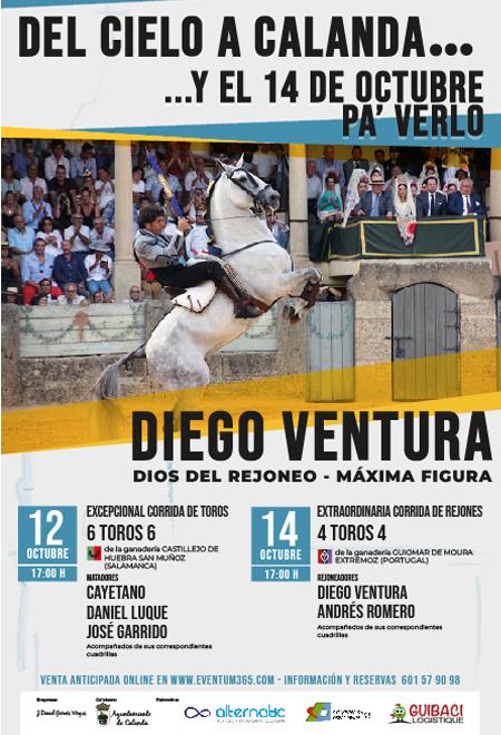 Extraordinaria corrida de rejones con 4 toros de la Ganadería Guiomar de Moura, de Estremoz, Portugal, para la máxima figura del rejoneo Diego Ventura y la sensación de la temporada Andrés Romero.