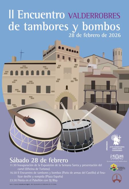 Valderrobres acogerá el próximo sábado 28 de febrero de 2026 el II Encuentro de Tambores y Bombos, una cita que volverá a llenar el municipio del sonido característico de la Semana Santa y que reunirá a tamborileros en un ambiente festivo y participativo.