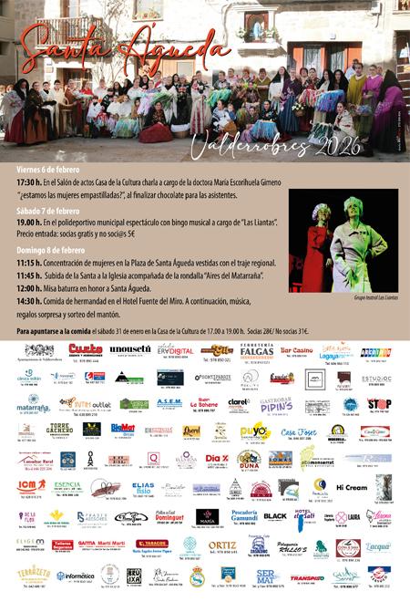La Asociación Cultural Santa Águeda de Valderrobres ha organizado para este fin de semana un completo programa de actividades con motivo de la festividad de Santa Águeda, que se desarrollará entre el viernes 6 y el domingo 8 de febrero y que combinará actos culturales, lúdicos y tradicionales abiertos a la participación de vecinas y vecinos.