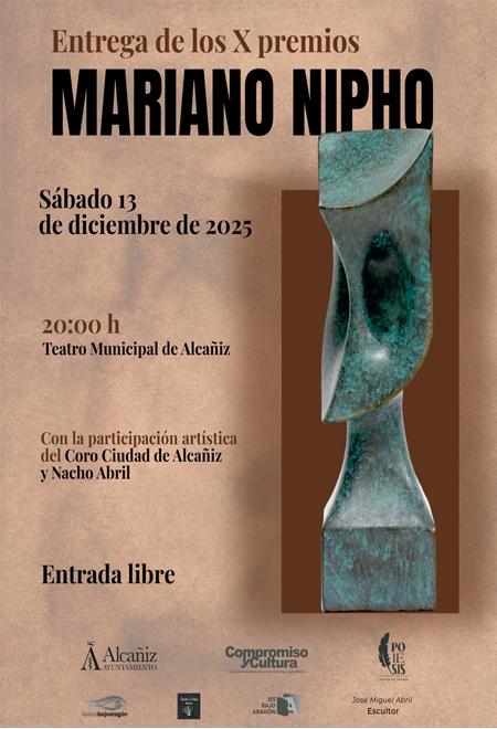 El próximo sábado 13 de diciembre de 2025, a las 20:00 horas, en el Teatro Municipal de Alcañiz, tendrá lugar la entrega de los Premios Mariano Nipho en su décima edición, con entrada libre hasta completar aforo.