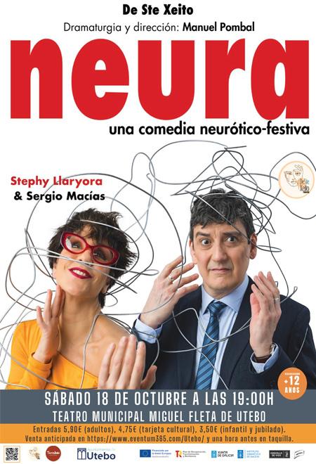 Neura es una comedia que aborda el tema de la salud mental. Eso sí, con minúsculas. Nuestros protagonistas conviven con manías propias y ajenas. Algunas de ellas intentan esconderlas mientras exhiben otras orgullosos. A veces las toleran, en ocasiones les buscan tratamiento, pero siempre sufren por ellas. Neura no es una comedia romántica: Edu y Sonia, ya vivieron en el pasado su historia de amor y desamor. Una historia que terminó precisamente a causa de esos pequeños trastornos. Son esa categoría difusa a la que llamamos “ ex”. Los azares de la vida hacen que se vuelvan a encontrar en distintas circunstancias. Obligados una vez más a poner a prueba la compatibilidad de sus neuras.