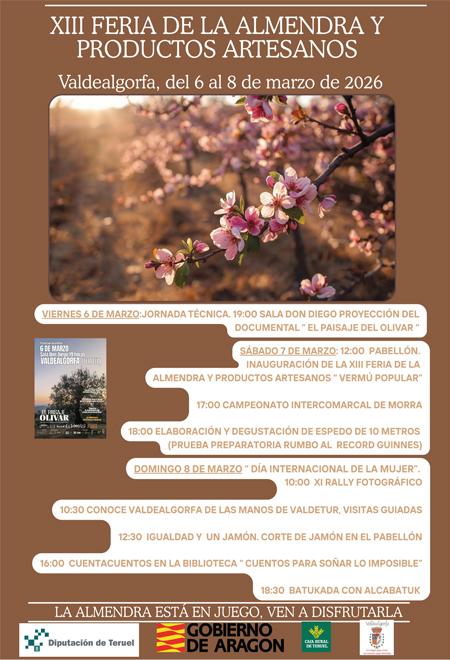 Ven a Valdealgorfa y disfruta de nuestra XIII Feria de la Almendra y Productos Artesanos, hemos preparado una feria con actos y expositores para que puedas disfrutar con tu visita.