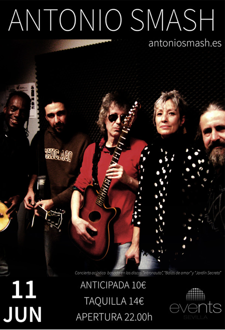Concierto acústico con un repertorio basado en los discos de Antonio Smash, “Intronauta”, “Balas de amor” y “Jardín Secreto”, más algunas versiones de clásicos del rock Formación: Daniel Cortés guitarra y coros, Lilly Pitta percusión y coros, Manolo Arcos armónica, Lourdes Rodríguez voz, coros y percusiones y Antonio Smash Voz y guitarra.